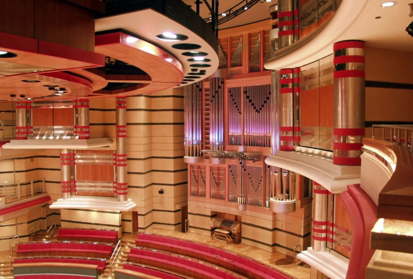 Цю багатопрофільність було створено завдяки таким інноваціям, як акустичний купол над сценою, який можна підіймати чи опускати. Це дозволяє створити найкращий звук залежно від кількості виконавців. Спеціальні м’які панелі, приховані за бічними сидіннями, за необхідності висуваються на доріжки, щоб створити суху акустику, необхідну для посилених шоу, а акустична завіса закриває кінець сцени в залі.